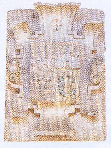 Ce blason de la ville est apposé sur la porte d’entrée du marché couvert. Ce dernier a été ajouté aux halles, devenues trop petites. Le maire, Roucolles, consigne en 1878, dans le respect des délibérations municipales, l’existence de ce blason qu’il a découvert dans l’annuaire du département de la Haute Garonne de 1867.
