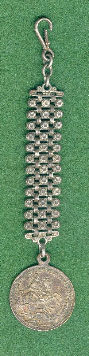 Médaille de St-Georges : diamètre : 27.7 mm ; épaisseur : 1.5 mm ; hauteur totale : 130 mm