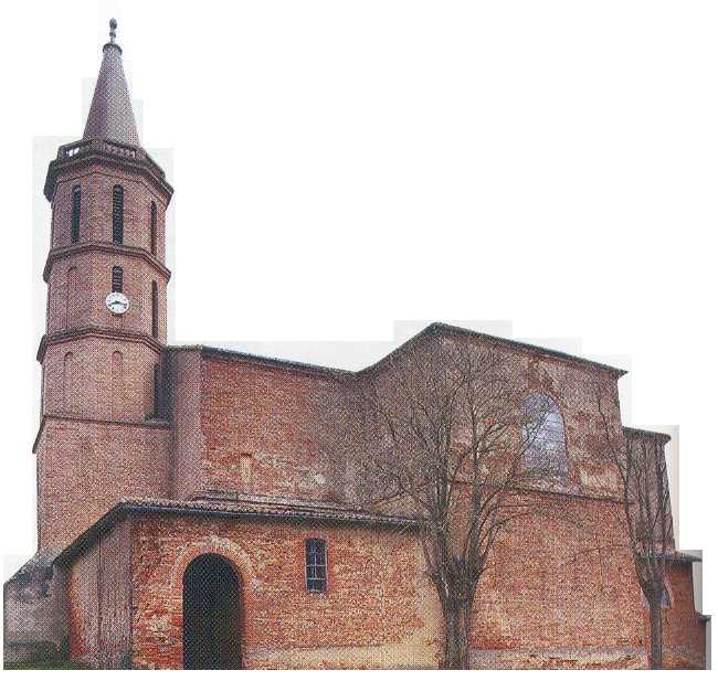 Reconstruite à partir de 1544, cette petite église adopte des solutions architecturales empruntées à l’époque gothique. Placée sous le vocable de Jean Baptiste, elle est, jusqu’en 1788, l’église d’une importante commanderie d’hospitaliers rattachée au grand prieuré de Toulouse. Son clocher octogonal est surmonté d’une grande flèche et comporte une balustrade ajourée. Grange XIXème siècle – Briques et bois :