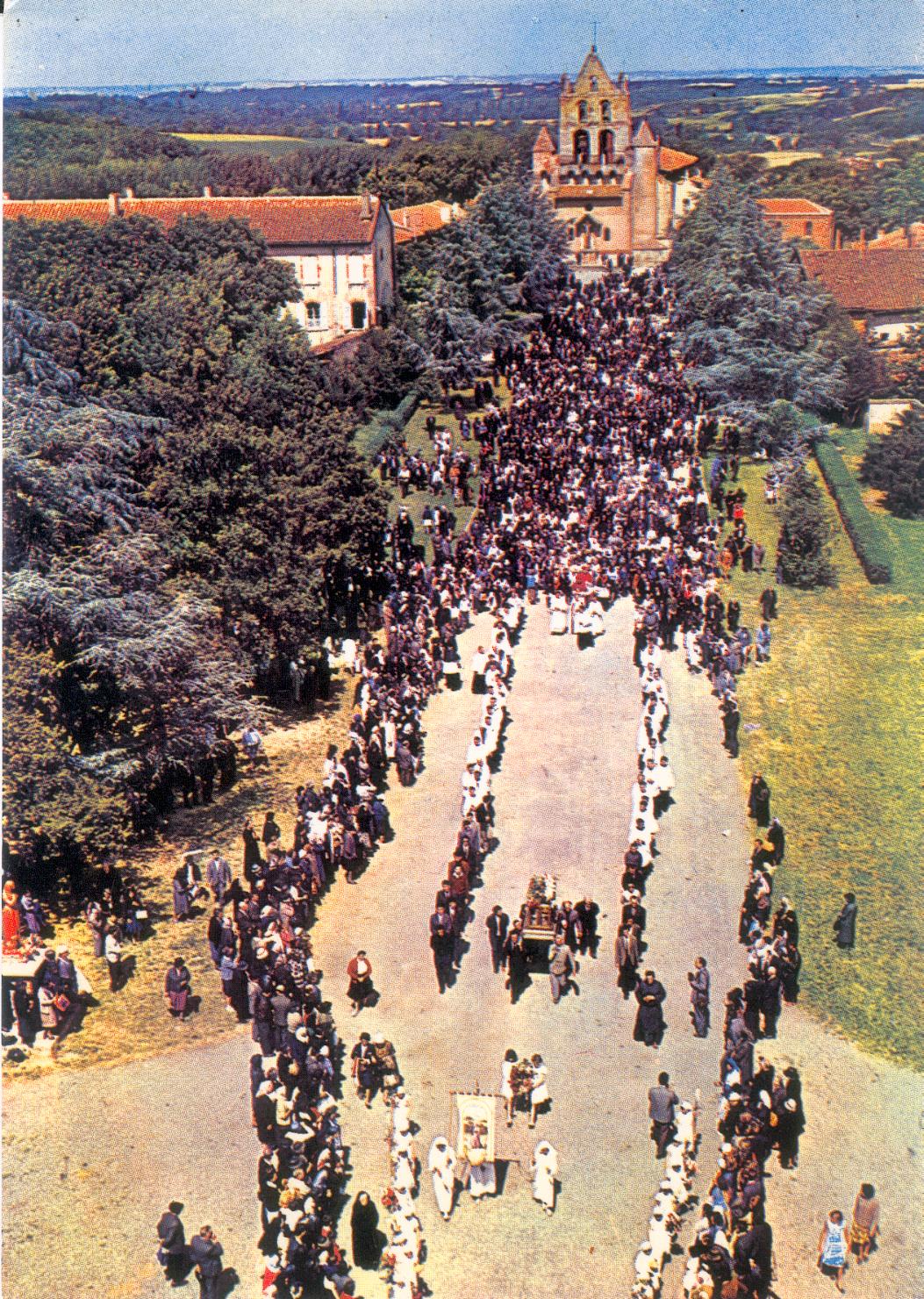 Pibrac : la procession sur l'ésplanade le 15 juin =================================================================== L'église , le château , la basilique , la ferme ,Sainte Germaine . =================================================================